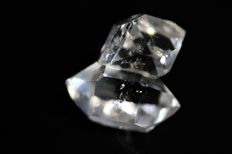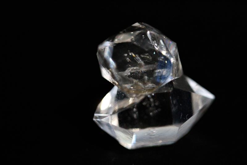 One of the clearest natural quartz is the famous twinned quartz from Herkimer county in New York State. Called “Herkimer Diamonds” for their exceptional quality and clarity, a new theory sheds light on these beautiful specimens – they were formed more than 500 million years ago through the work of Radiolaria – living organisms! It is therefore an amazing thing that these are biogenic gemstones!!! This piece is also a rarer citrine piece. It is also an enhydro quartz – with a clear and moving bubble of water inside. Note the photo.